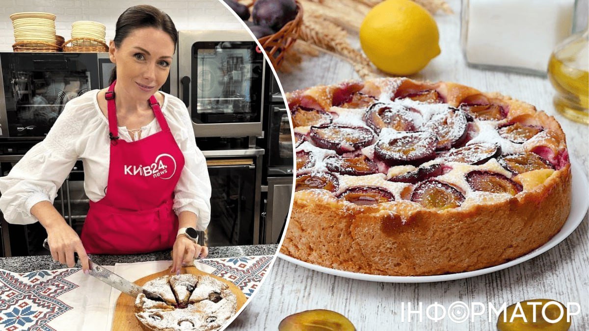 Розкатайте тісто в тонкий пласт, викладіть його у форму для запікання. На дно покладіть сливи і залийте їх піною. Поставте пиріг у попередньо розігріту до 170 градусів духовку на 40 хвилин.