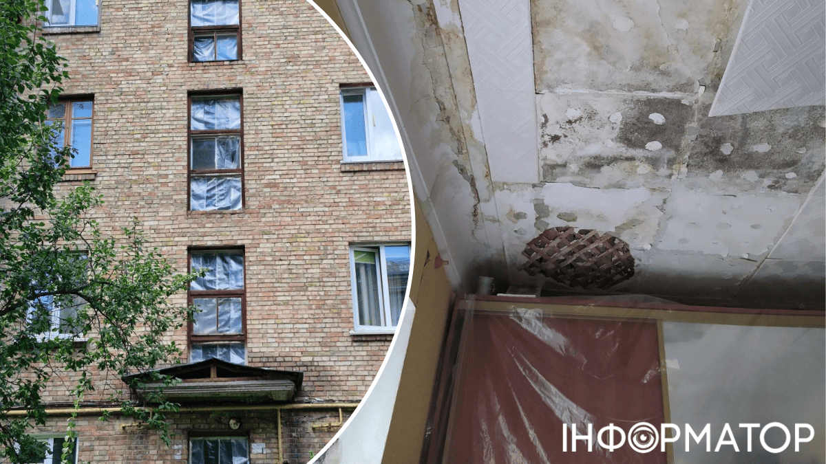 За словами мешканців, дах старого будинку на вул. Авіаконструкторська, 13/2 почали ремонтувати лише у жовтні, та й це сталося завдяки благодійникам. Однак, 4 жовтня, коли його почали розбирати, став дощ, і квартири знову затопило. Усередині будинку видна прогнила й обвалена стеля, чорна пліснява, брудні сліди від води, яка тече з даху, та дірка з відкритою дранкою. Частина кімнати укрита поліетиленовою плівкою, але це не рятує від вологи.